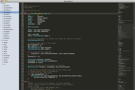 Sublime Text 2 also lets you choose how you switch between files. It has a modern tab implementation, including dragging tabs between windows. A side bar is available, for when you need to work with a large number of open files. Both the tabs and side bar can be shown or hidden individually.