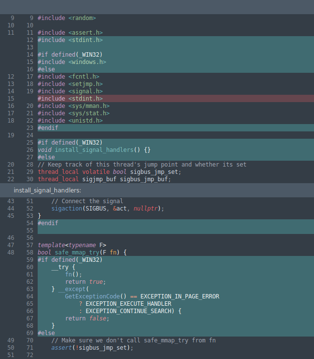 There, now you just need to remember to always call install_signal_handlers for every application, and wrap all file accesses with safe_mmap_try. Annoying, but manageable. So now you've covered POSIX systems, but what about Windows?